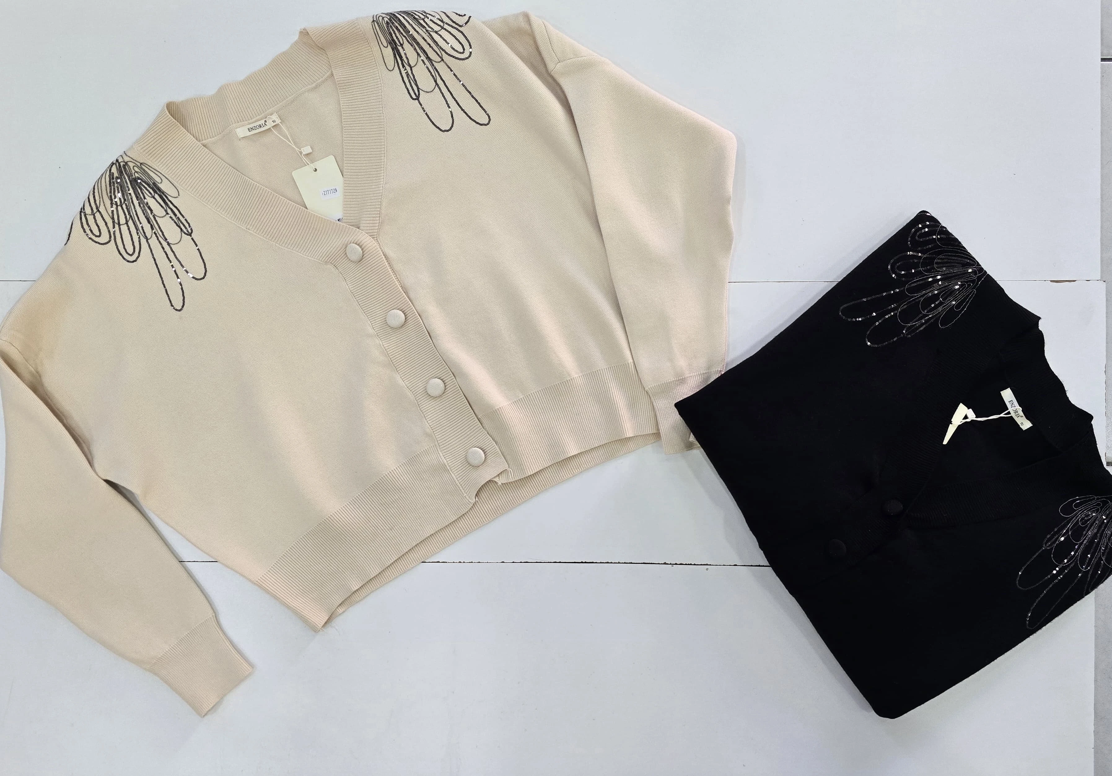 قماشة تريكو صوف ناعم قياس واحد الألوان: باج وأسود |
