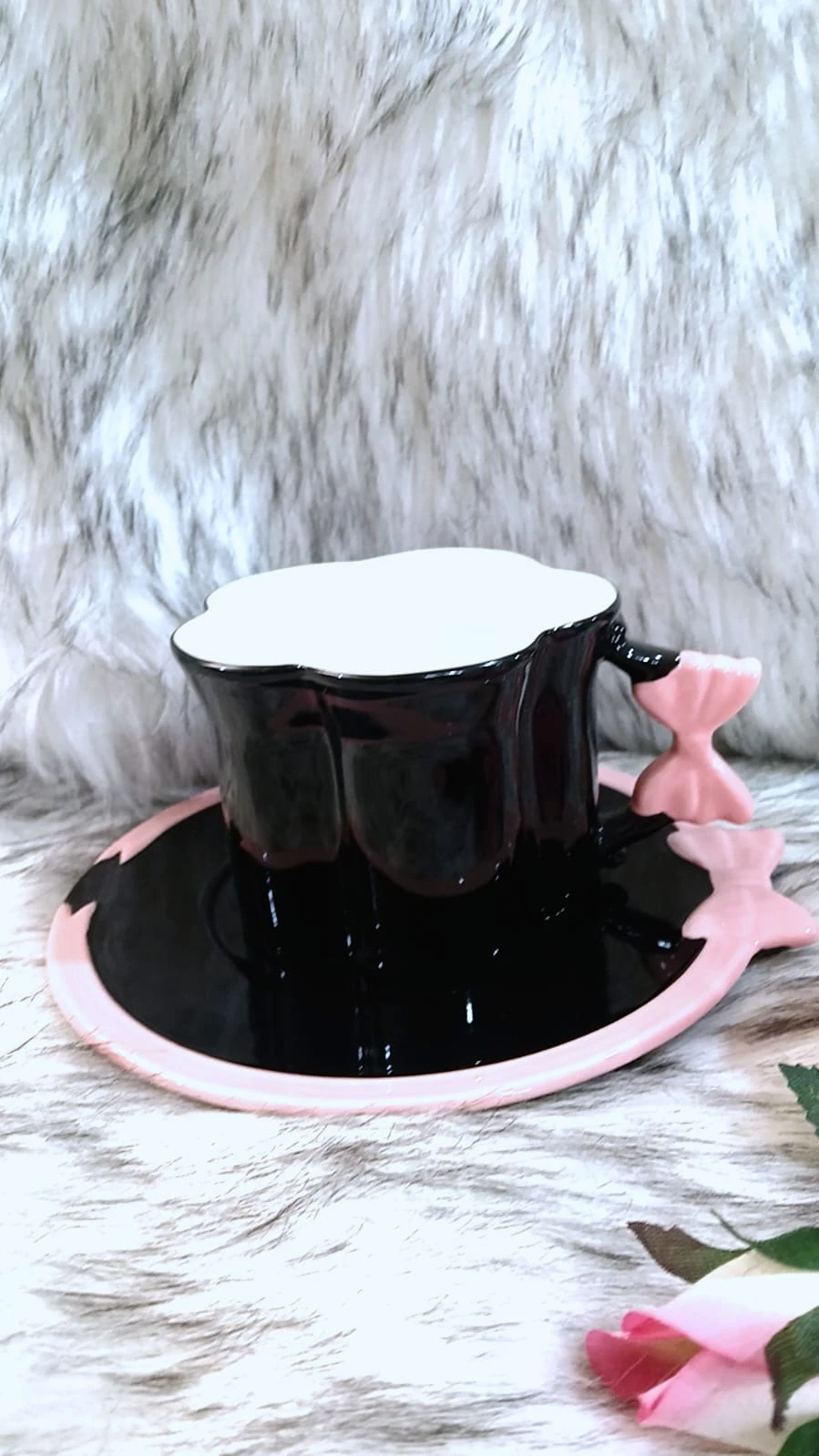 ماغ مع صحن لون أسود وزهر ب ١١ $ |
