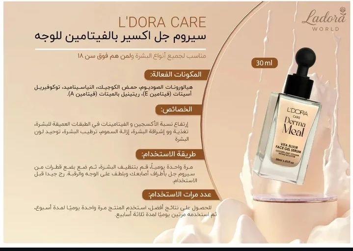 منتج متكامل ليعطي بشرتِك جرعة مركّزة من الفيتامينات والنضارة اليومية. تركيبته الخفيفة بتمتصها البشرة بسرعة من دون ما تترك أي ملمس دهني، وبتناسب كل أنواع البشرة من عمر 18 سنة وفوق. 💛 شو بيعمل؟ • بيعزّز إشراقة البشرة وبيعطيها حيوية فورية • بيساعد على توحيد اللون والتخفيف من البهتان • بيرطّب بعمق وبيترك البشرة ناعمة ومشدودة • بيدعم تجدد الخلايا ليظهر الوجه أنعم وأنضر 💧 قوامه جل خفيف مثالي للاستعمال اليومي صباحاً ومساءً، قبل الكريم المرطب، ليحضّر البشرة ويدعم نتائج روتينك. الحجم: 30 مل اختيار مثالي إذا بدك بشرة مرتاحة، مضيئة، ومليانة حياة |