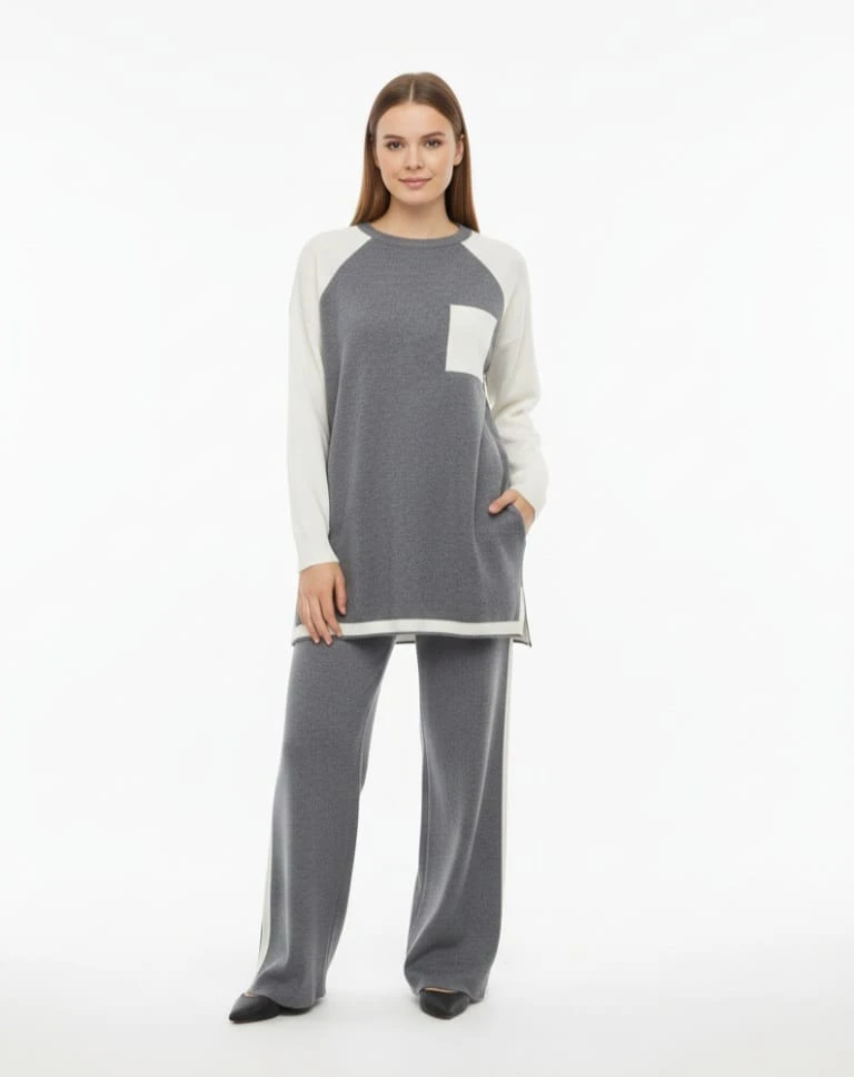 طقم صوف مرتب كحلي اسود ورمادي وان سايز |