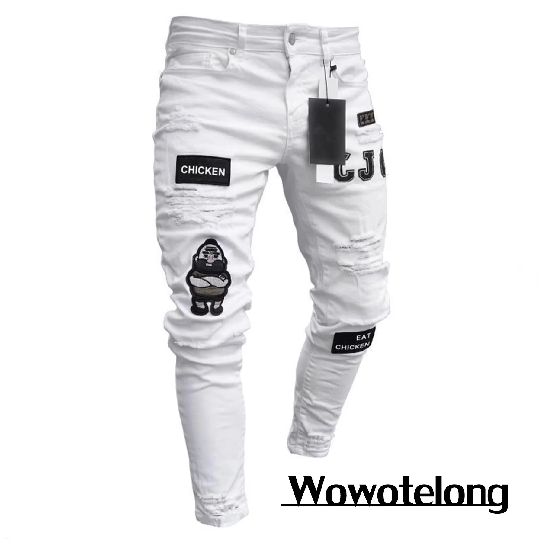 Fashion Street Style Ripped Skinny Jeans Men Vintage wash Solid Denim Trouser Mens Casual Slim fit pencil denim Pants hot sale