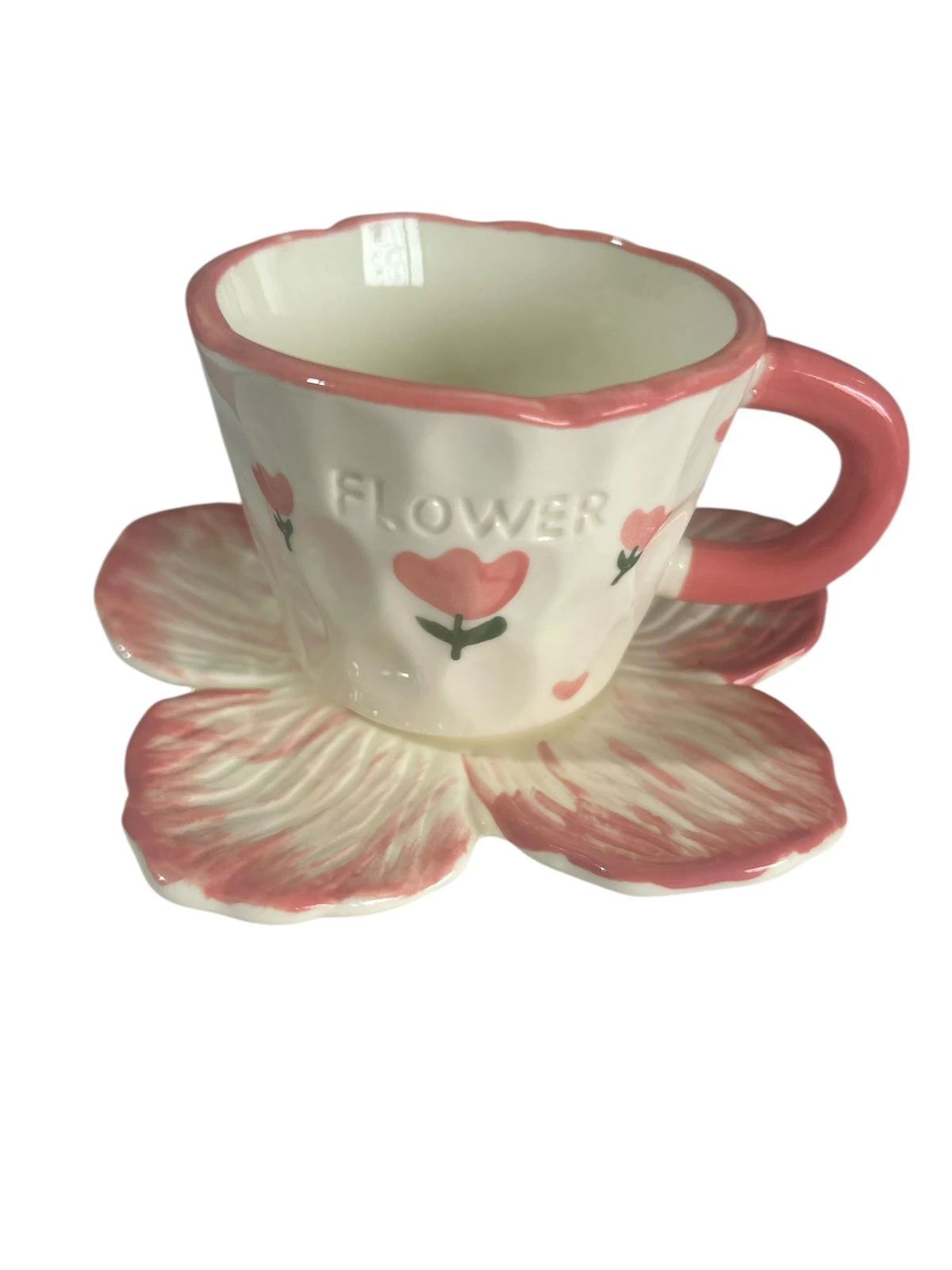 فنجان سيراميك مع صحن بتصميم زهرة ناعم، أنيق ومثالي للقهوة أو كهدية راقية |