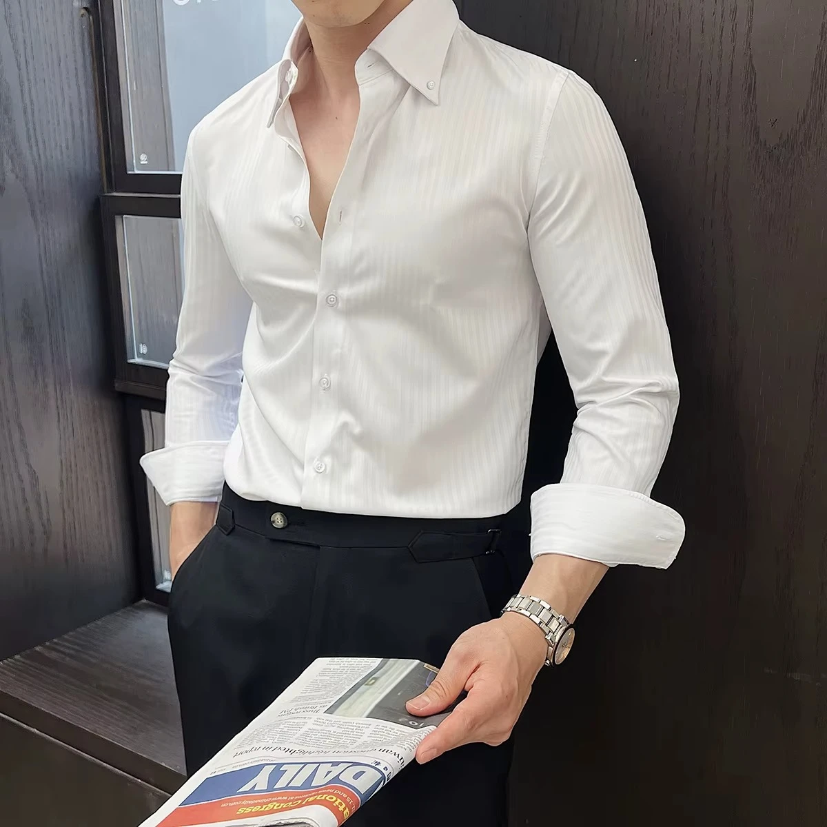 High-quality autumn men's new long-sleeve dark striped slim-fit shirt business casual formal workwear M-4XL