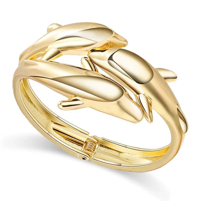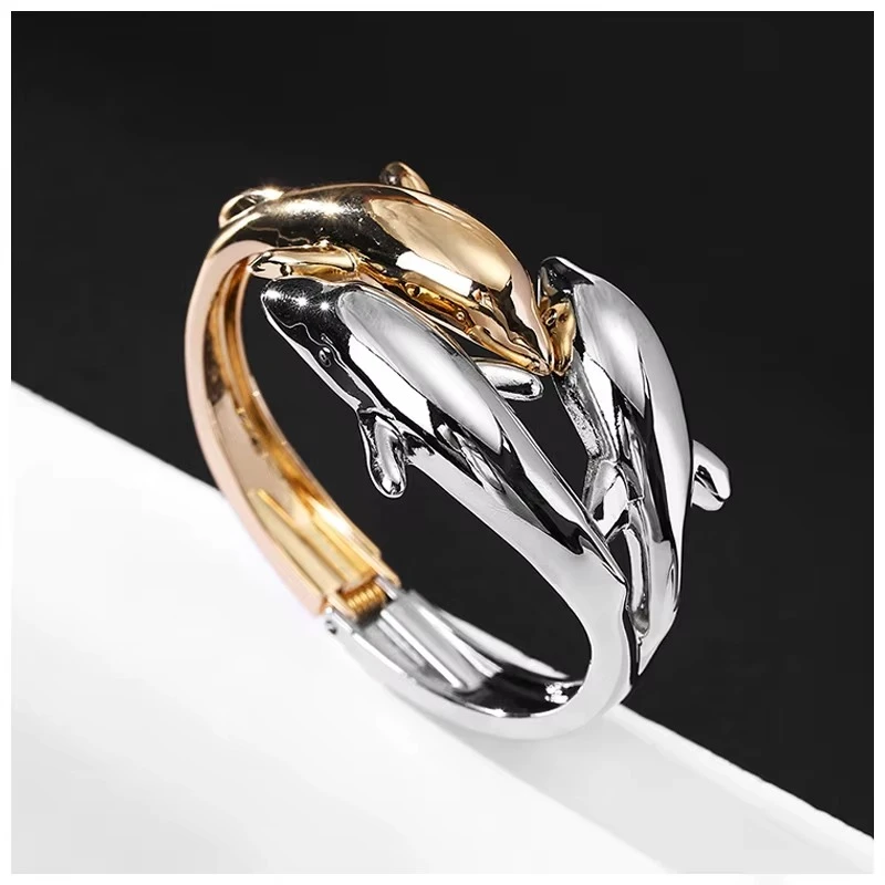 KAYMEN Luxury Dolphins Cuff Bracelet Animal Bangle for Women Fashion Statement Alloy Bangle Jewelry Accessory