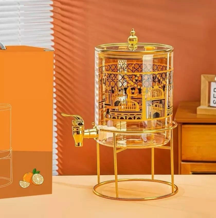 ✨كولير للماي او للعصير مع حنفية و قاعدة حديد تقيل ✨لون شفاف مع نقشة مميزة لرمضان ✨باضافة لغطا زجاج و مسكة ✨حجم كبير 3.6L |