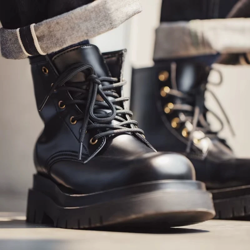 Maden Men's Vintage Cowboy Hight Top Boots Black Motorcycle Boot British Split Leather TPR Sole Work Safety Boot Outside Shoes