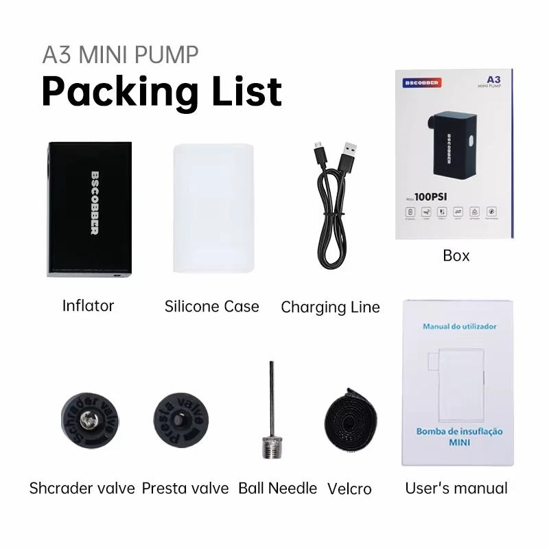 Portable mini Pump for Bike Tires - Mini Air Compressor Cycling Tire Inflator 100PSI - Mountain Bike Road Bicycle Tire Pump