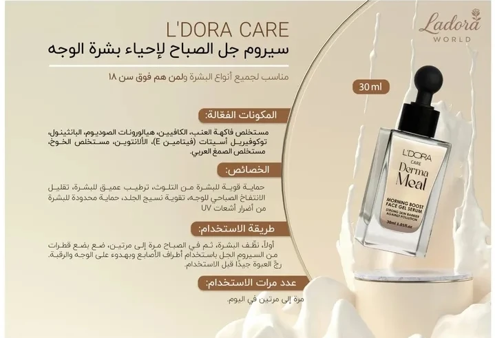 ✨ سيروم جل الصبح لإحياء بشرة الوجه – Derm Heal من L’Dora Care (30ml) ✨ سيروم خفيف بقوام الجل، بينعش بشرتِك من أول الصبح وبيعطيها دفعة طاقة فورية ✨ مناسب لكل أنواع البشرة وبيحتوي على SPF 18 لحماية يومية خفيفة من الشمس ☀️ 💧 شو بيعمل؟ – ترطيب عميق ومنع الجفاف – بيعطي نضارة وإشراقة فورية – بيساعد يخفف مظهر الخطوط الرفيعة – بيحمي البشرة من العوامل الخارجية 🌿 مكوّناتو المميزة: هيالورونيك أسيد، كولاجين، بانثينول، فيتامين E ومستخلصات طبيعية مغذية للبشرة. 👌 طريقة الاستعمال: حطي كمية صغيرة الصبح على بشرة نظيفة، دلّكي بلطف ليمتصّ السيروم بالكامل. ممكن تستخدميه قبل كريم النهار أو المكياج. إذا بدِك بشرة مرتّبة، مشرقة ومحميّة من أول النهار… هيدا هو سر الإشراقة 💛 ❶ |