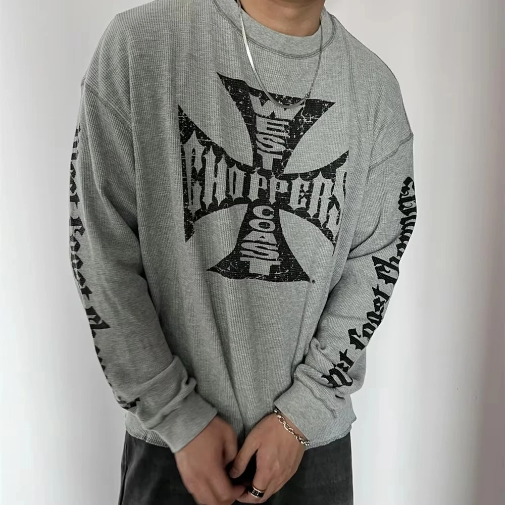 Yao Fashion Vintage Loose Streetwear HipHop Sanskrit Logo Print Tee High Quality Long Sleeve Oversize Y2k T Shirt For Men