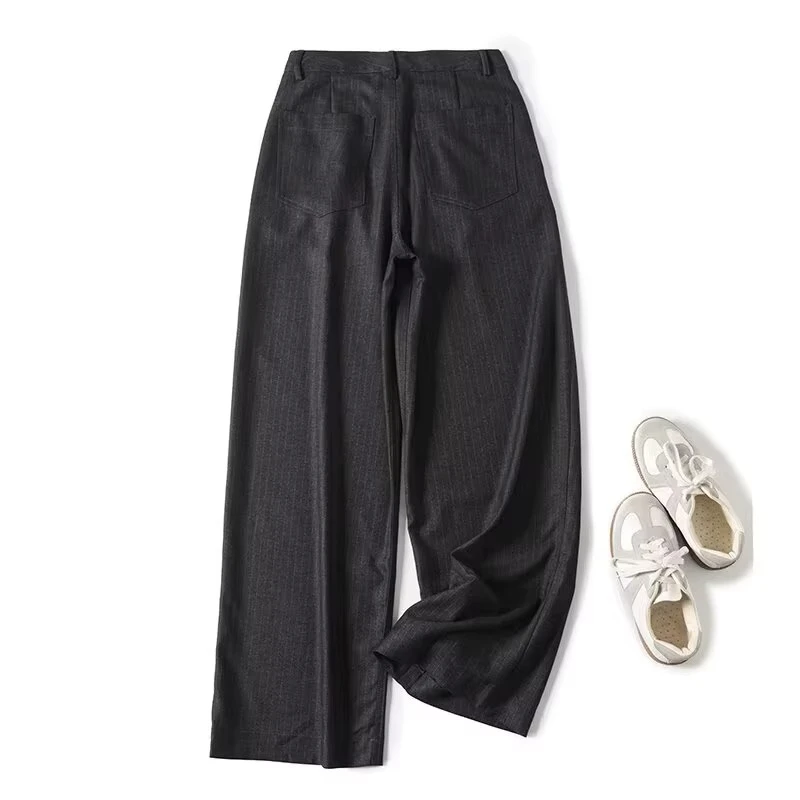 YENKYE Women New Fashion Office Wear Striped Wide Leg Pants Casual Autumn Female Trousers pantalones de mujer